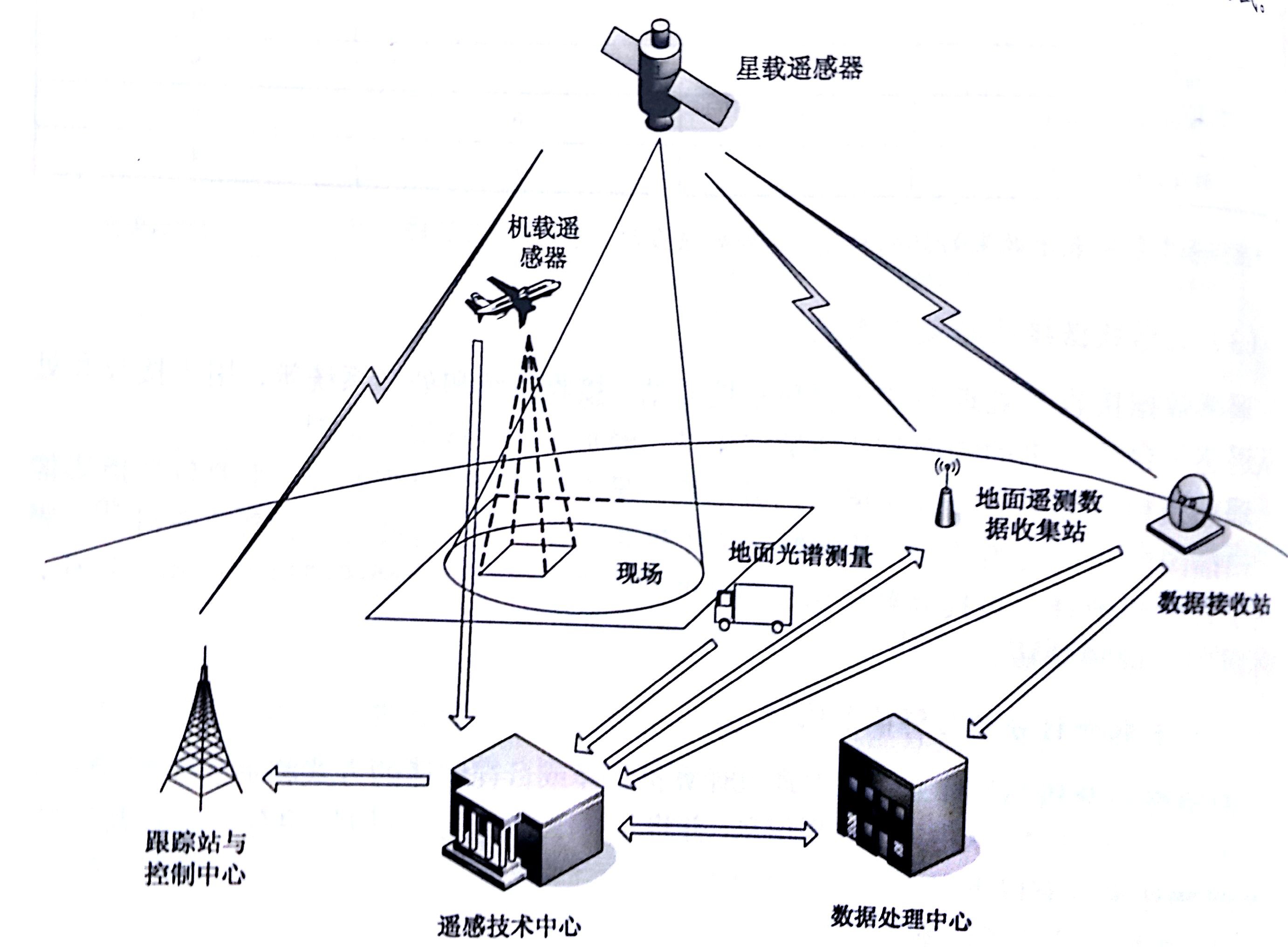 利用航天、航空以及地面三种不同高度的遥感平台,可形成天、空、地一体化的立体遥感观察网。一种典型的应急现场立体遥感观察网如图所示。在实际应用中,针对不同突发事件性质及其事态发展时间阶段,可综合利用一种或者多种遥感方式。
